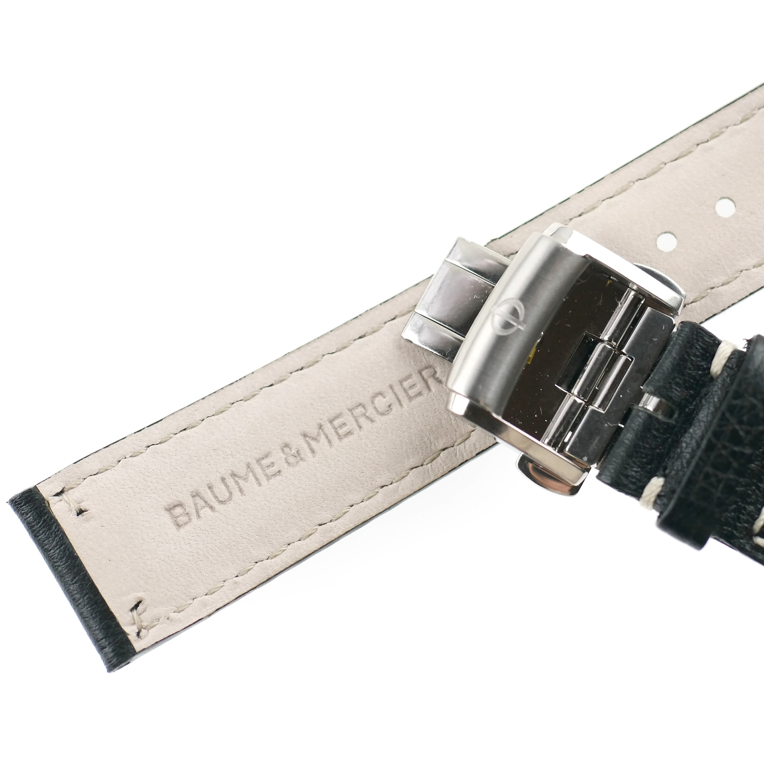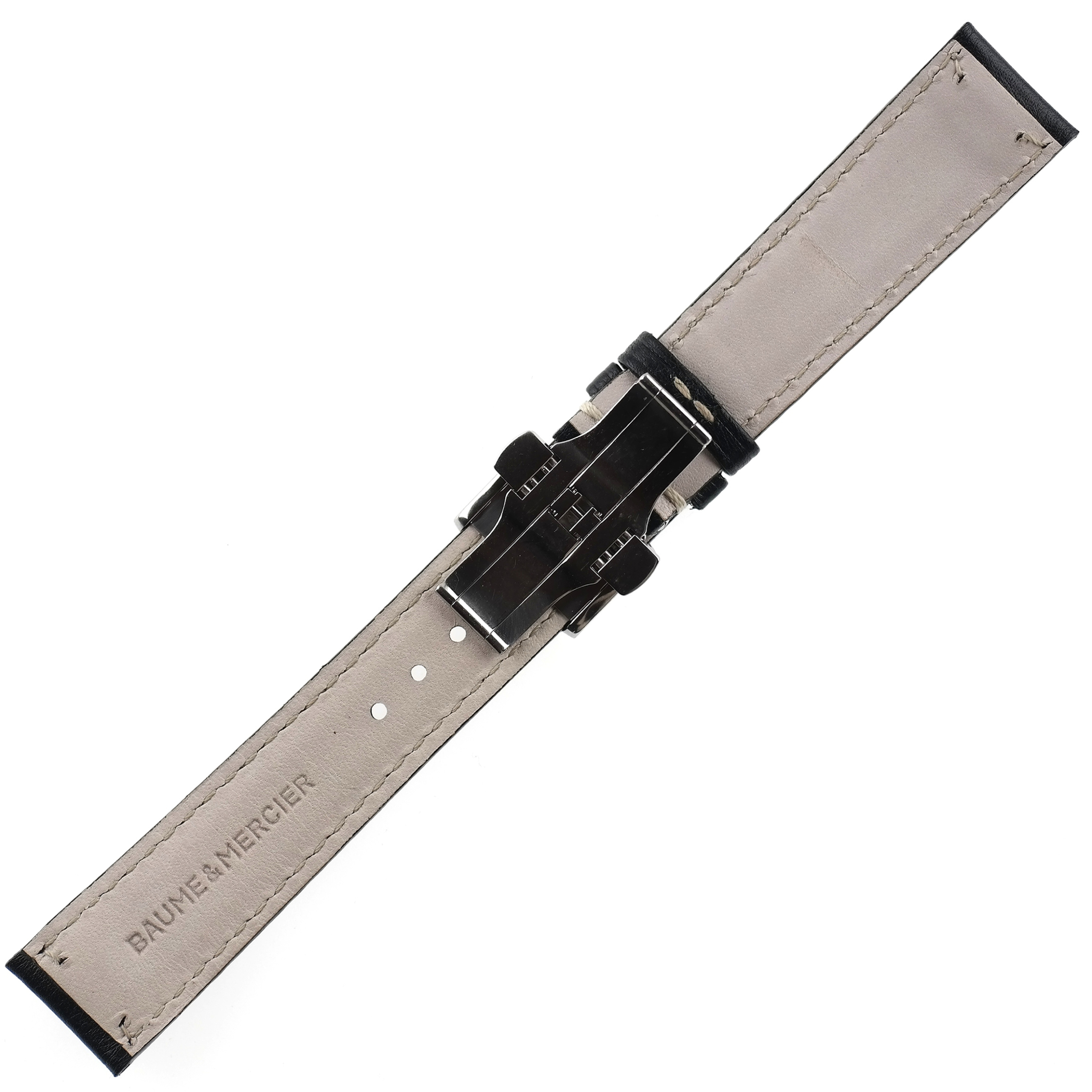 Strap marked BAUME & MERCIER | D. Buckle marked with the BAUME & MERCIER logo.