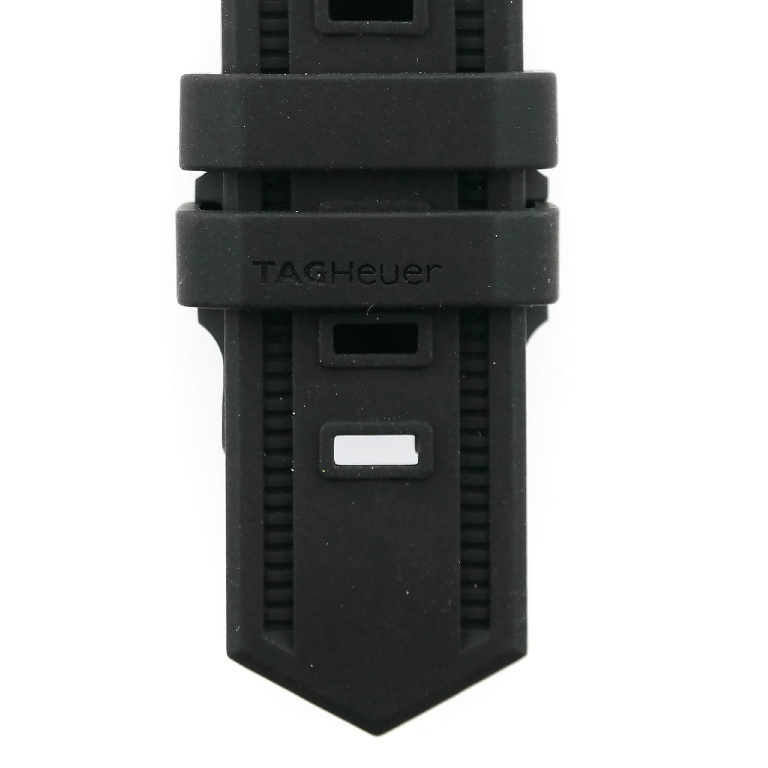 Black vulcanized rubber strap, with its distinctive TAG Heuer logo.