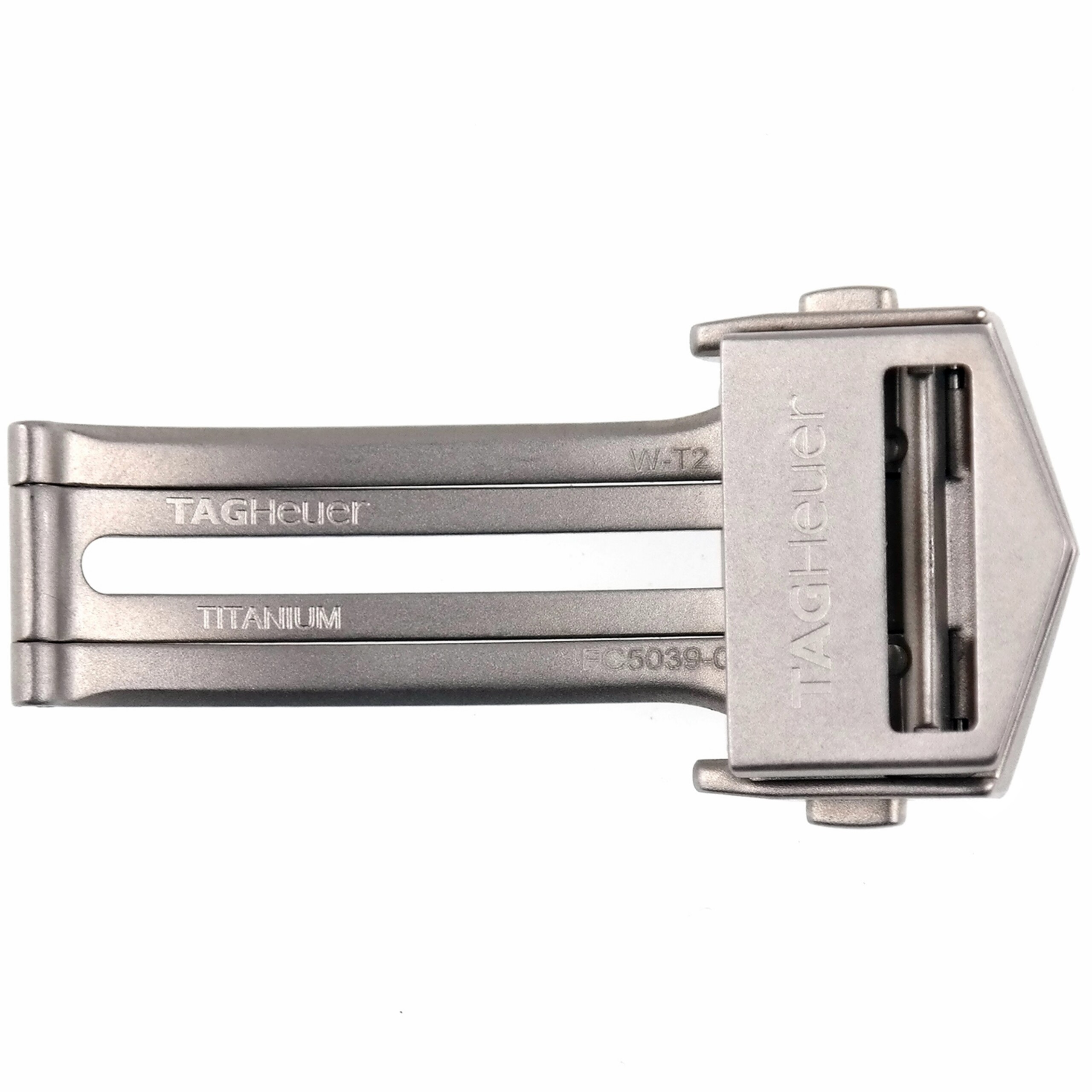 The folding clasp is marked TAG Heuer | TITANIUM | W-T2 | FC5039-0.