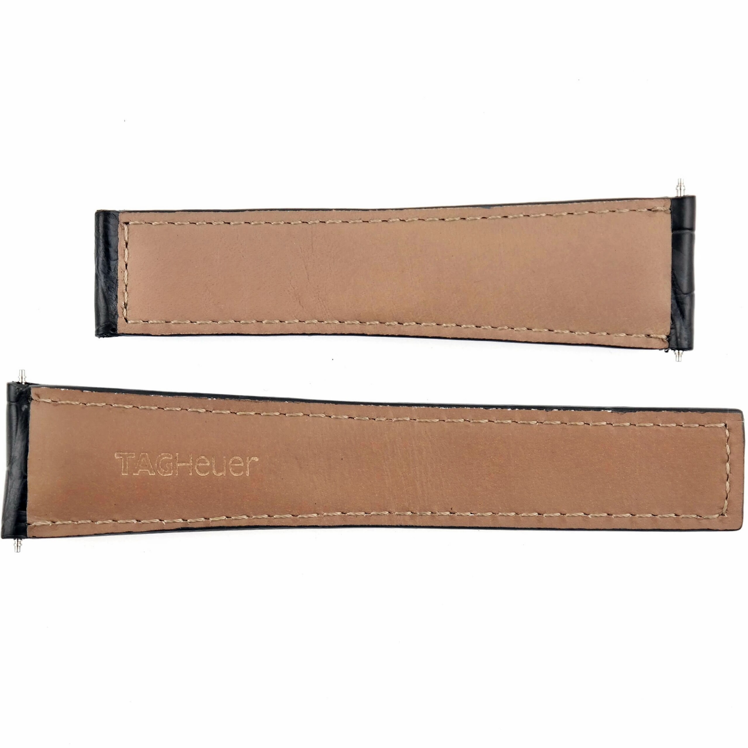 Short piece is ca. 85 mm, long piece is ca. 105 mm. The strap is marked TAG Heuer.