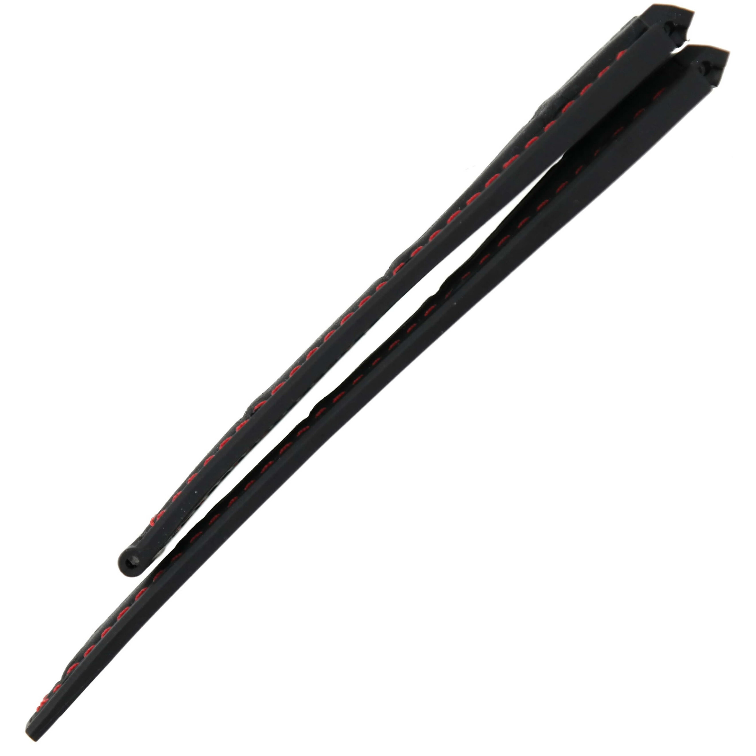 Black alligator grain genuine leather on rubber with red stitching.