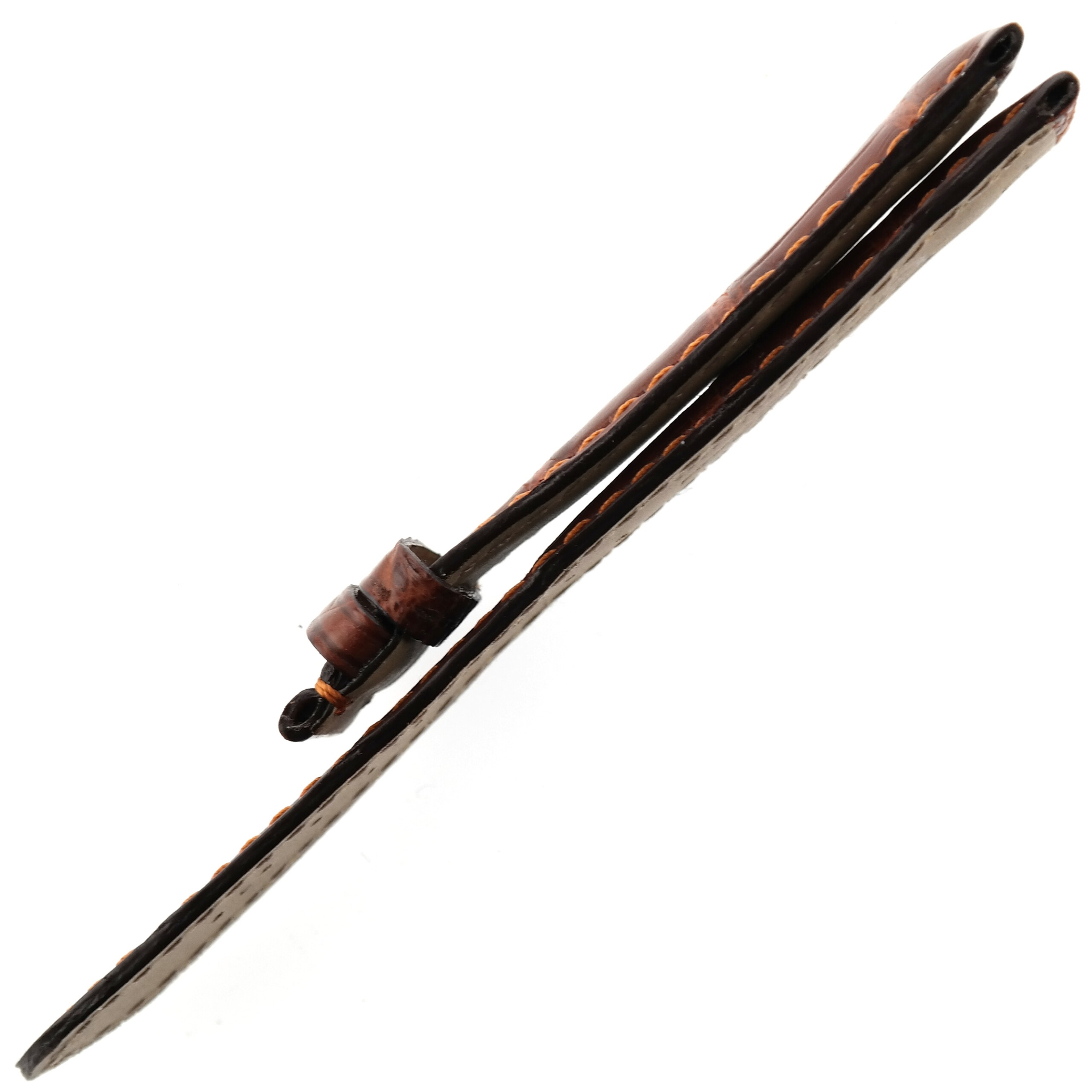 Dark brown crocodile skin on genuine leather with brown stitching.