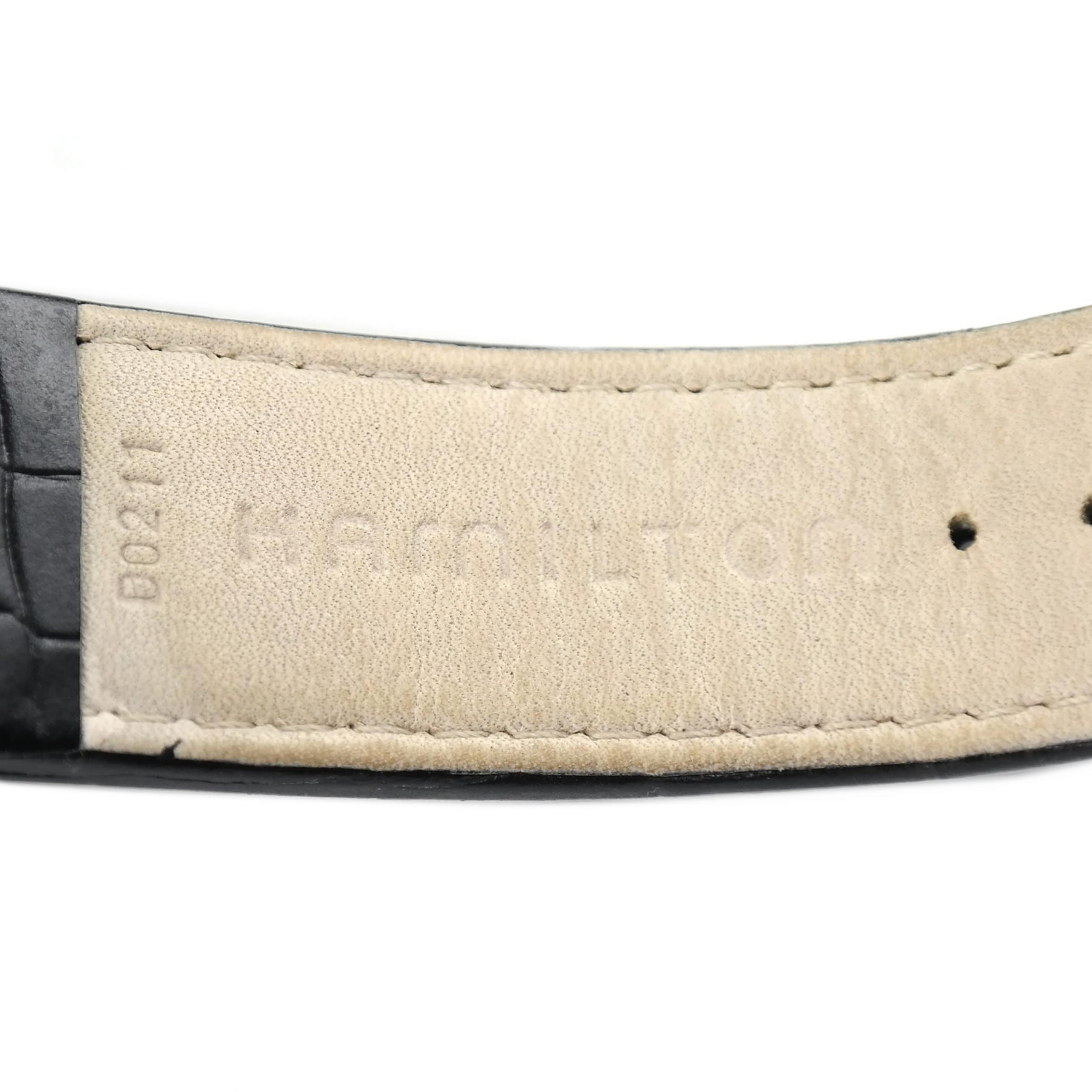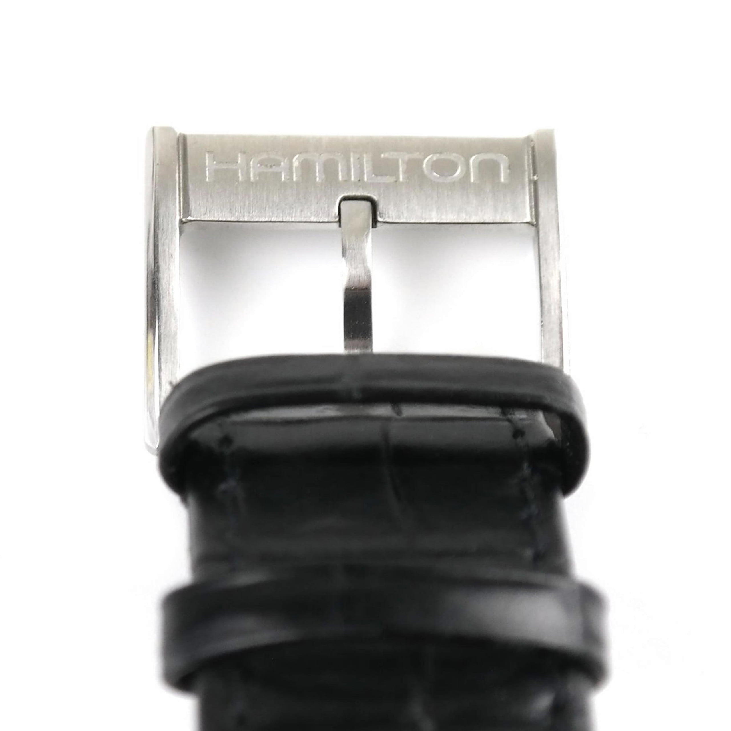 Original black leather strap with ardillon buckle, both marked HAMILTON.