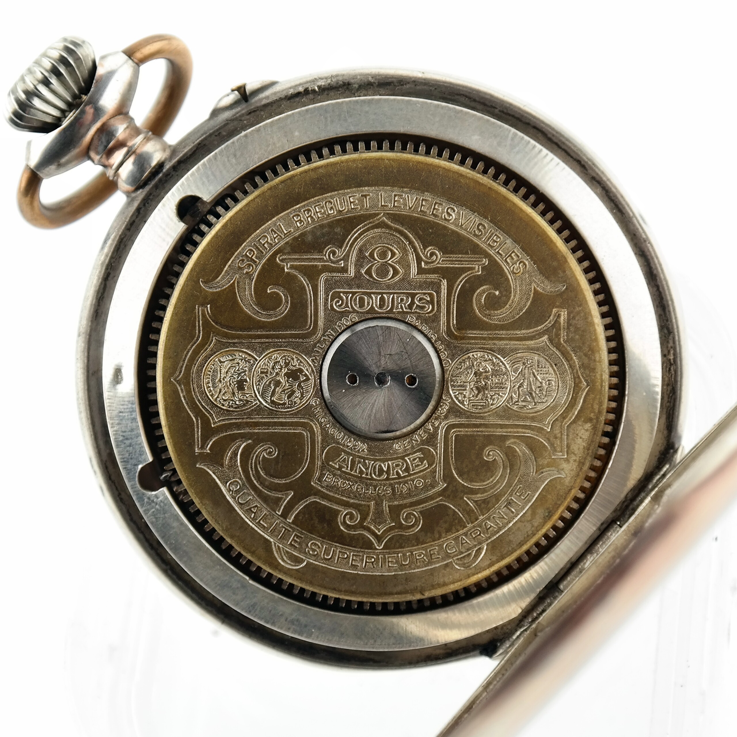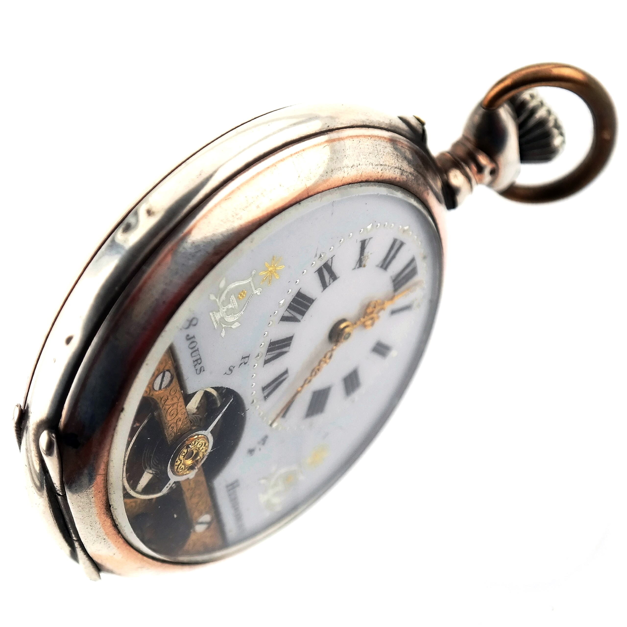 HEBDOMAS 8 Days Vintage Pocket Silver Watch