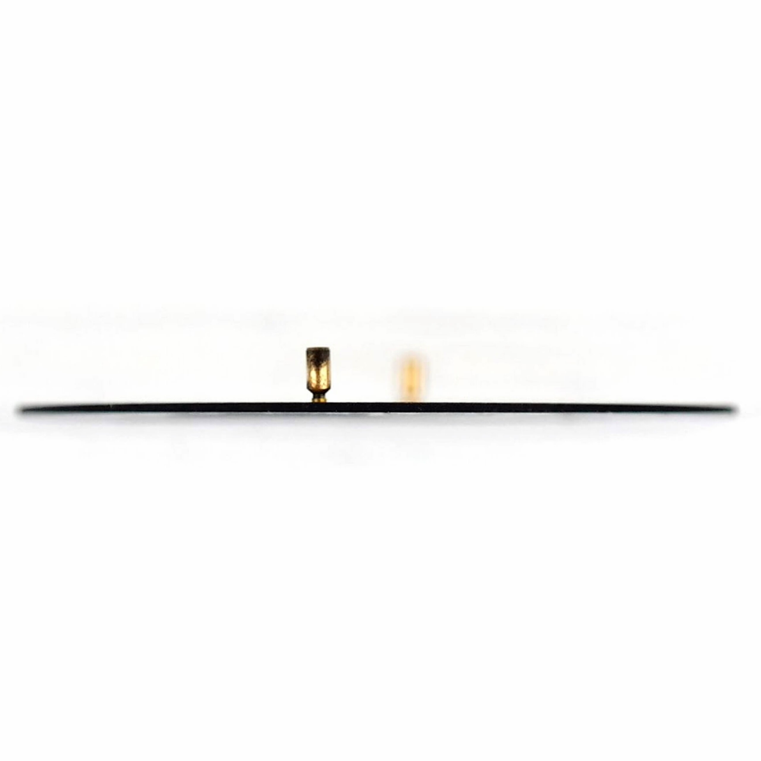 Ca. 29.5 mm diameter, black face with white Arabic numerals, white hours markers, and white indexes and accents.