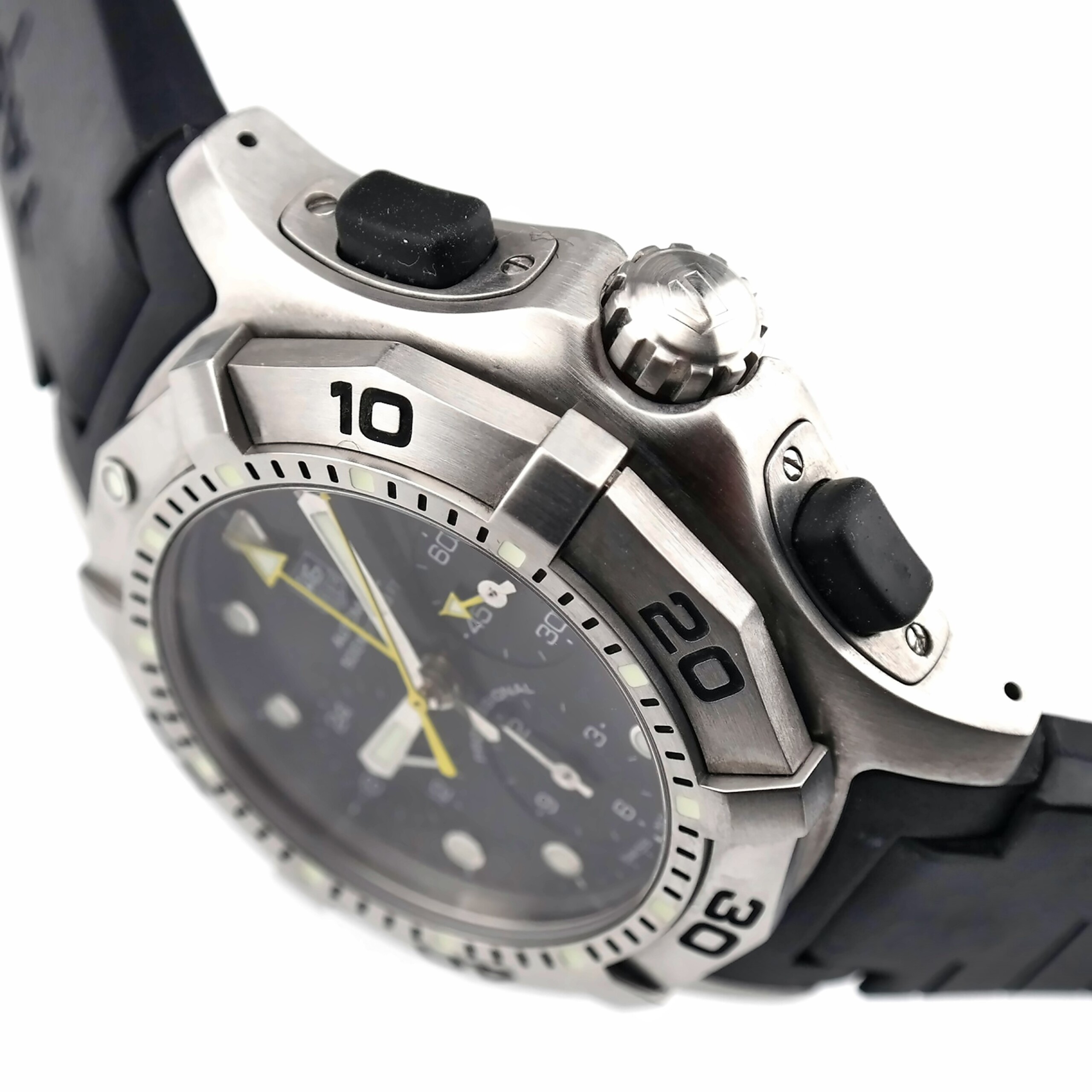 Full TAG Heuer CN211A watch kit including the hands, dial and case with mounting ring, case-back and rubber band.