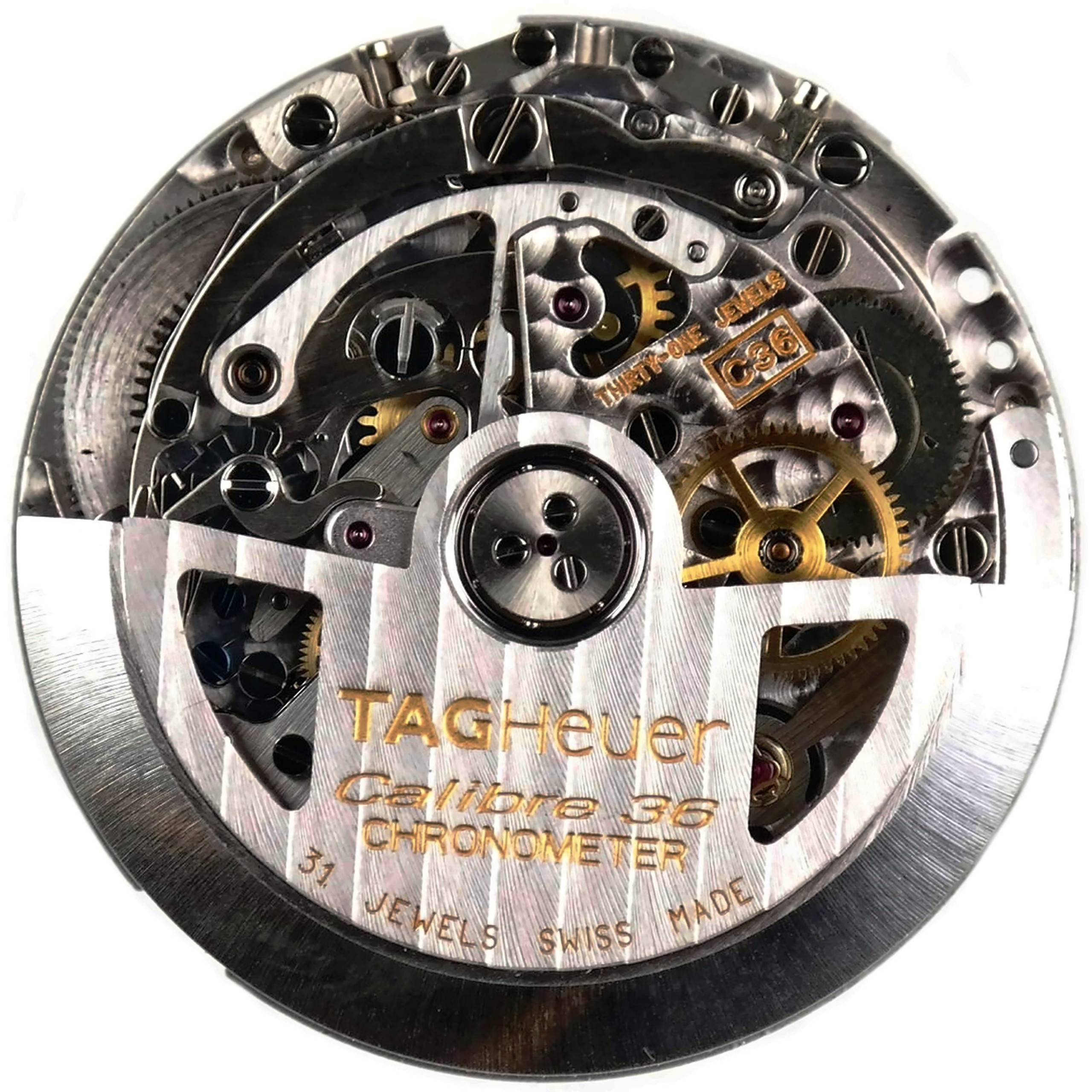 TAG Heuer Calibre 36, Swiss Made. Automatic calibre.
