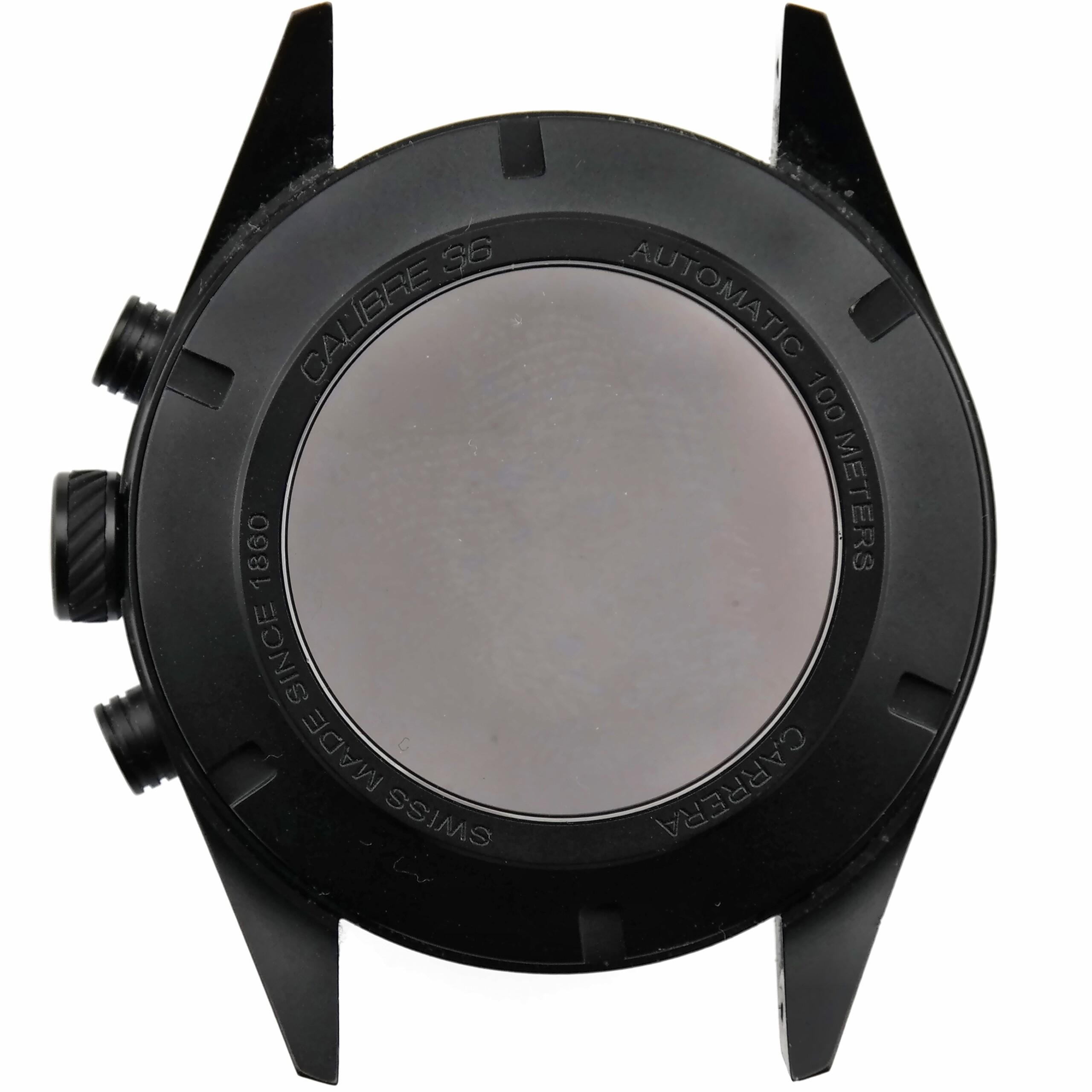 Case-back marked CARRERA | SWISS MADE SINCE 1860 | CALIBRE 36 | AUTOMATIC 100 METERS.